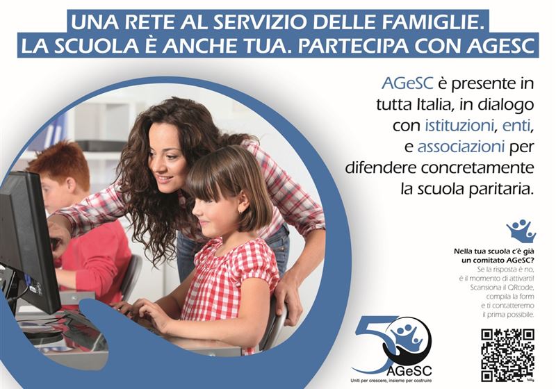 L’Associazione Genitori Scuole Cattoliche “AGeSC” rappresenta le famiglie che scelgono la scuola cattolica paritaria come strumento educativo per i propri figli. In quasi 50 anni di attività a livello regionale, nazionale e internazionale, l’AGeSC è stata riconosciuta come uno degli interlocutori più qualificati sia in ambito civile che in ambito ecclesiale.