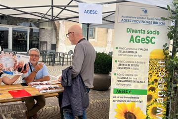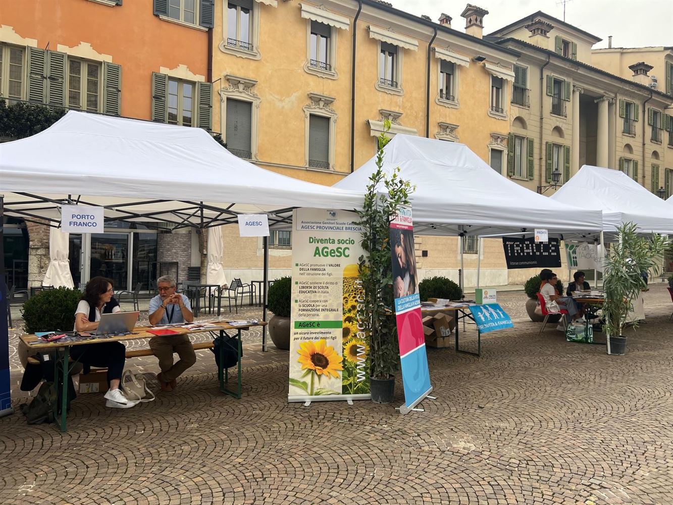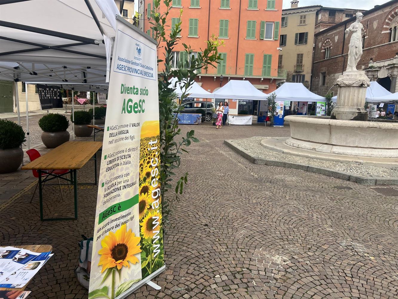 Come già lo scorso anno, lo spazio nord di Piazza Paolo VI ha accolto numerosi gazebo, punto di incontro per le tante associazioni nate all’interno dell’esperienza cristiana. Tra queste, anche AGeSC Brescia ha portato la sua presenza come segno semplice ma concreto di testimonianza.